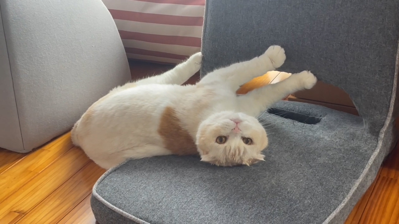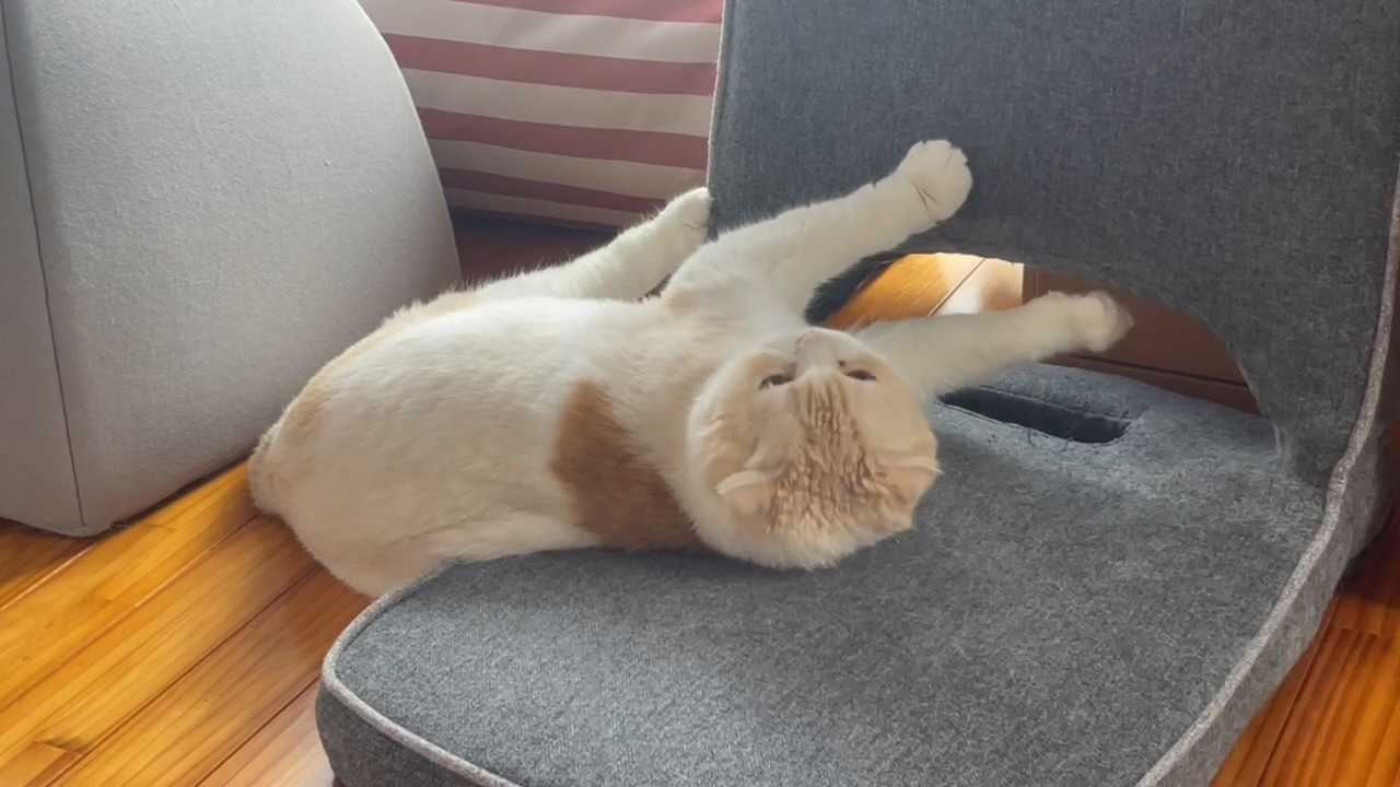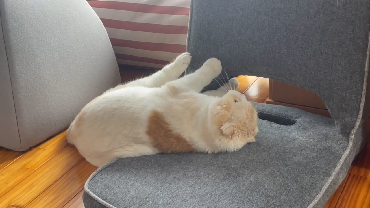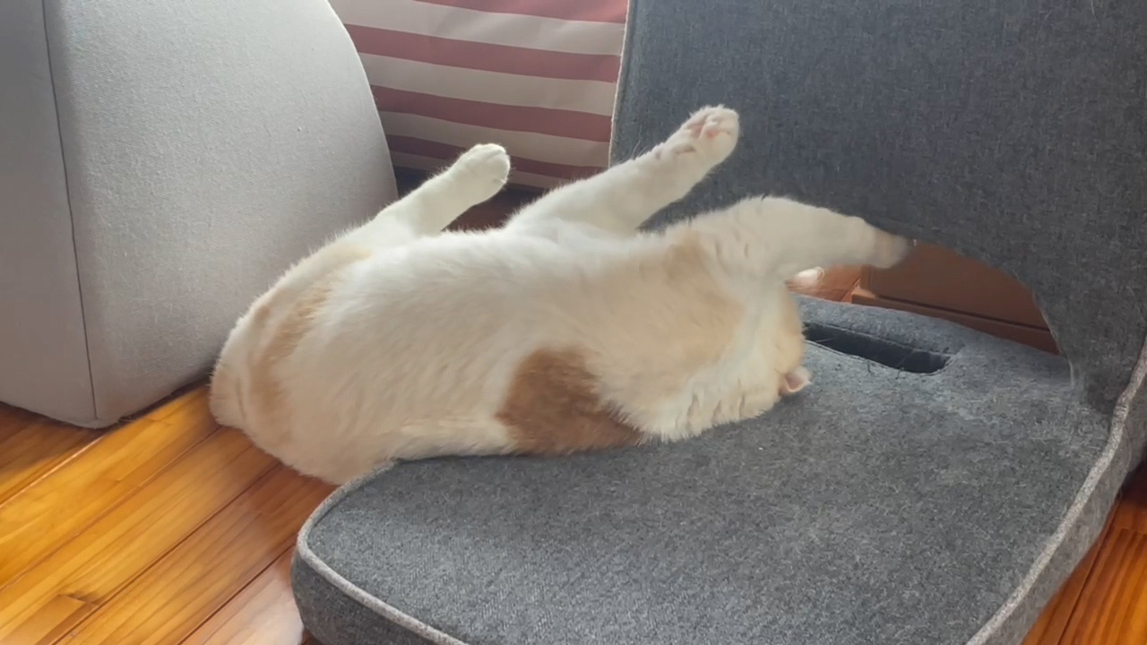 座椅子に寝転がるナッツ。