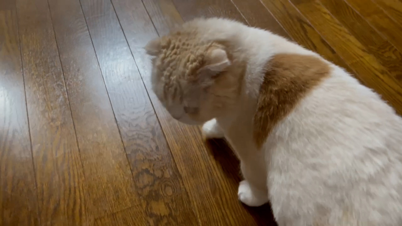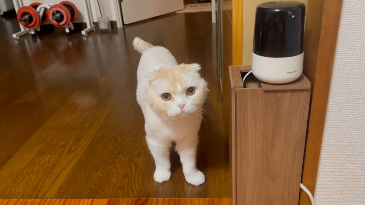 ナッツがパパを、お部屋にエスコートしてくれます。