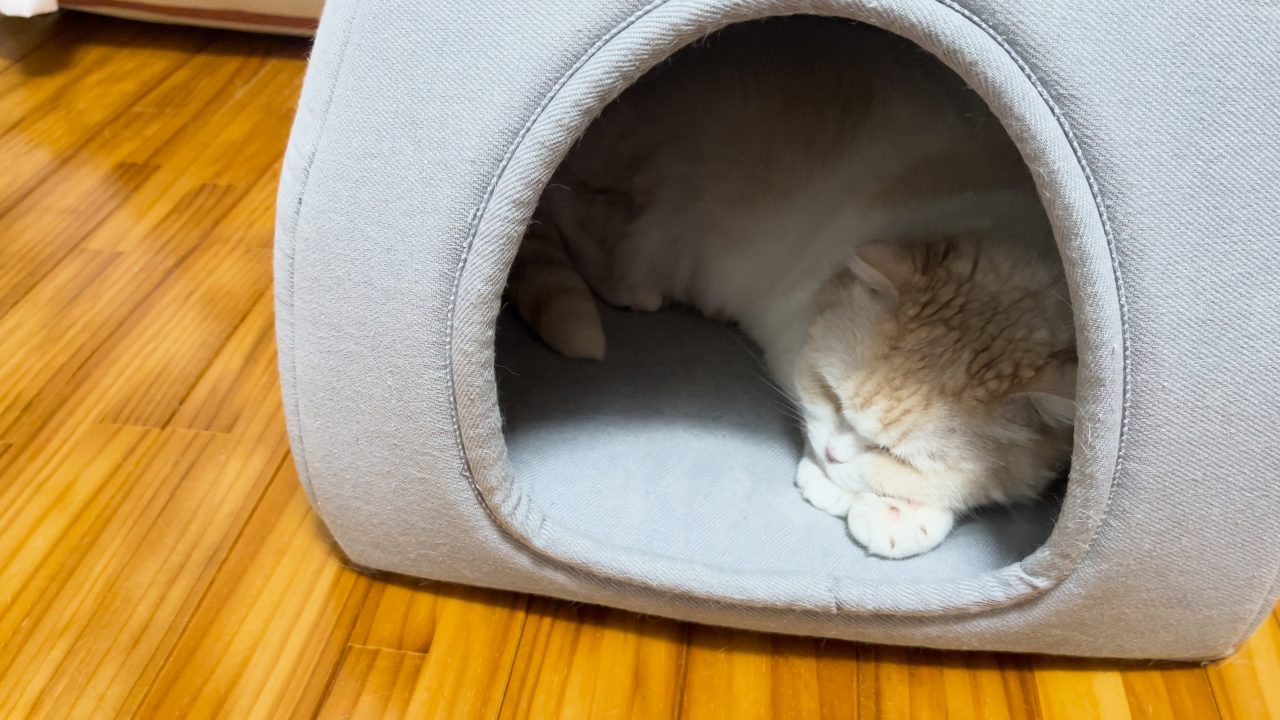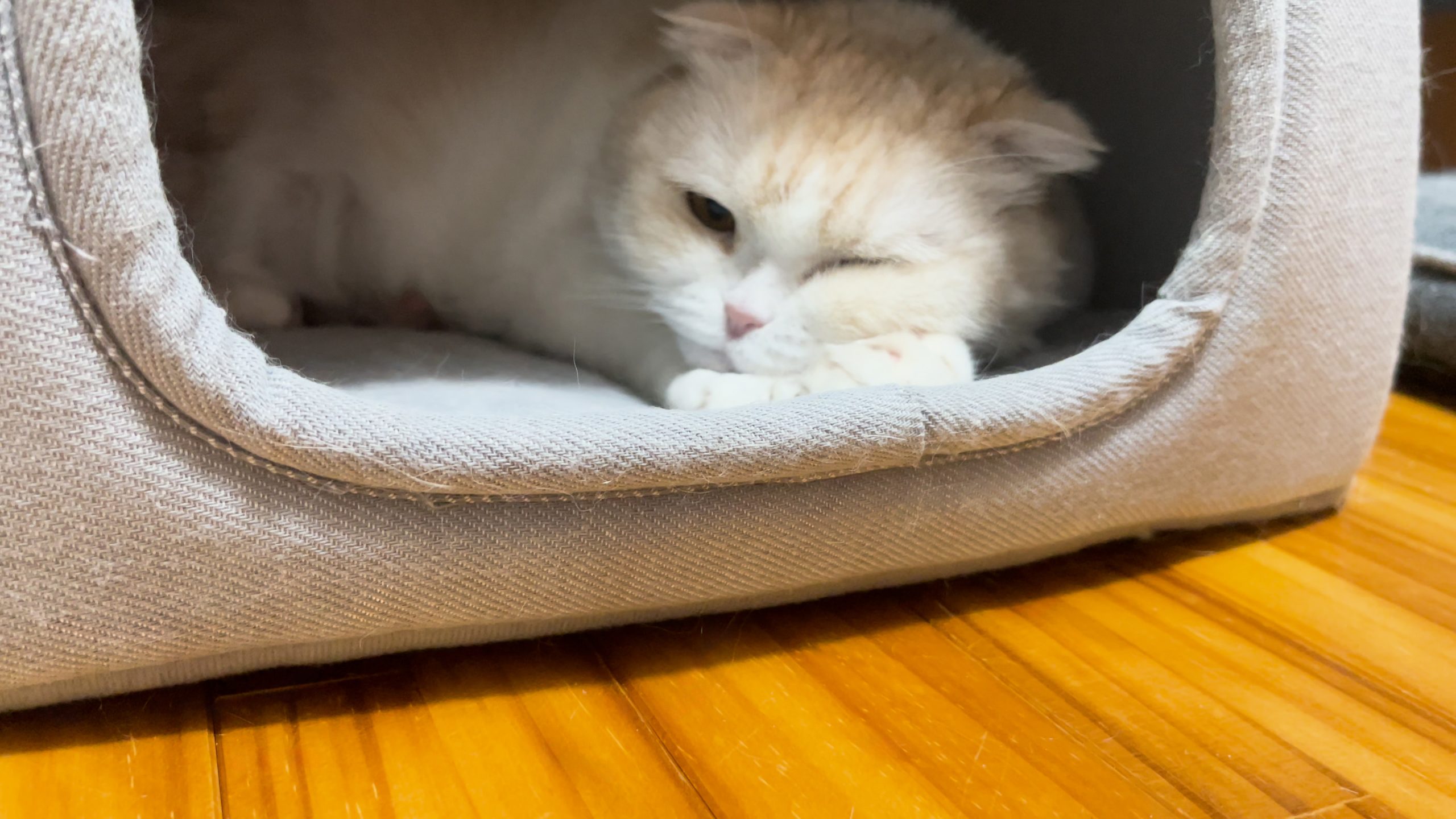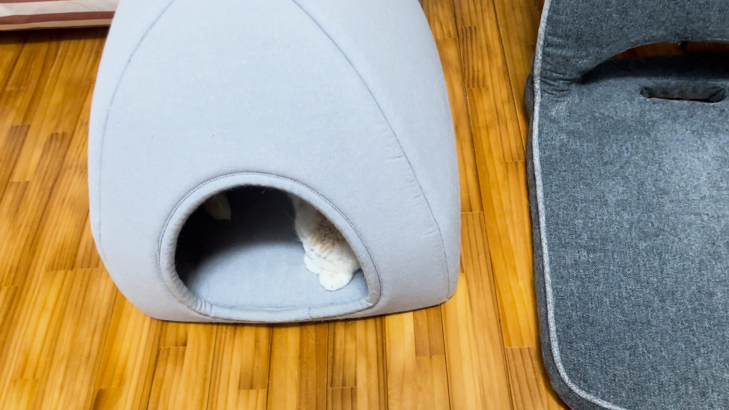 ナッツハウスのなかで、くつろぎ中のナッツ。