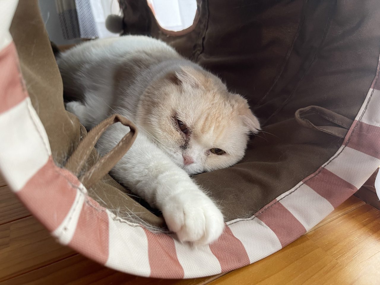 今日もナッツは、頑張っています。涙が止まり、目の周りの赤みも少しずつ治まってきました。