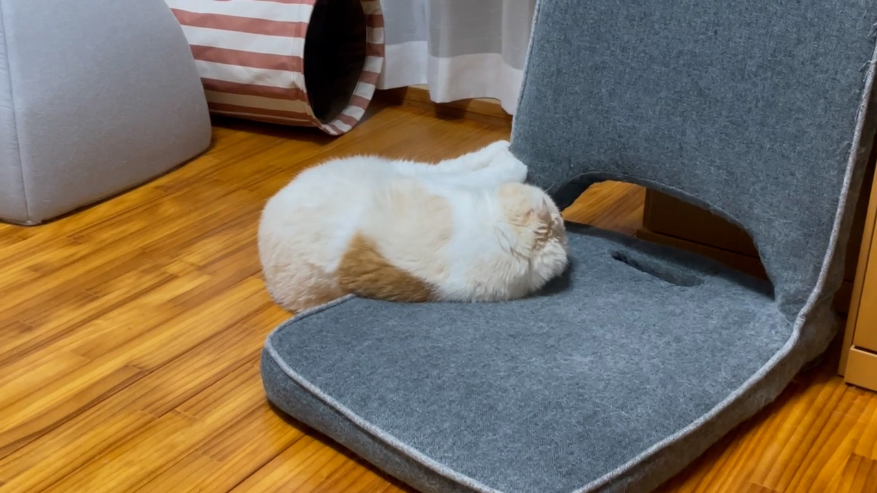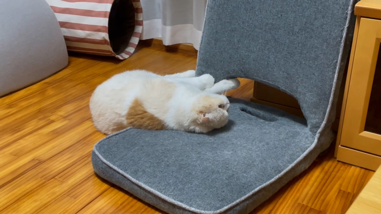ナッツが座椅子で遊んでいます♪