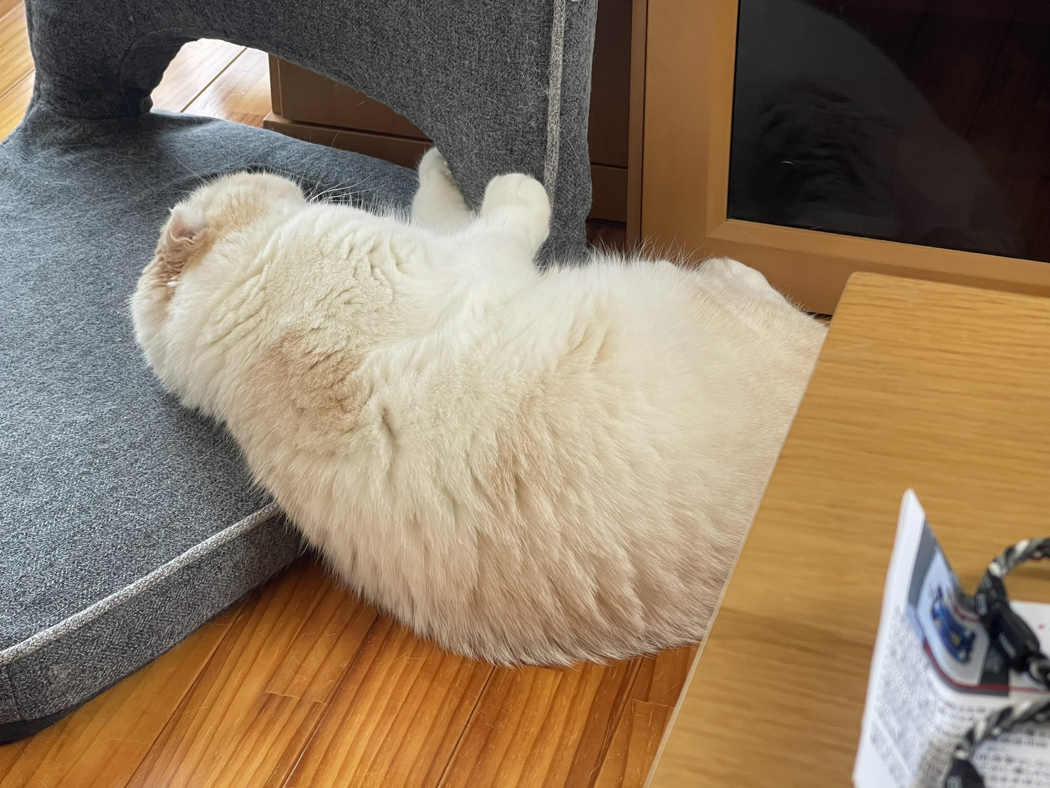 まんまるナッツが、座椅子をまくらに横になっています。