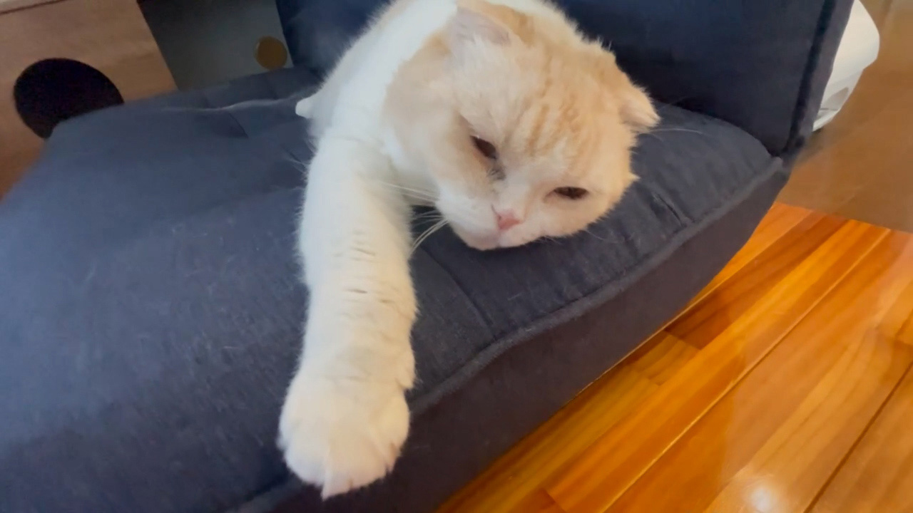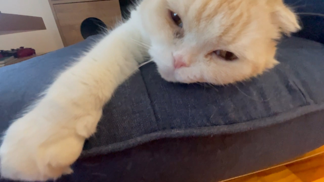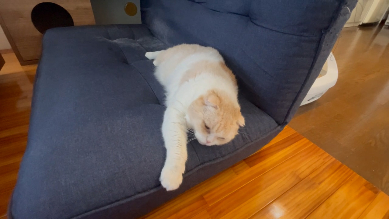 起床後まもなく。 ナッツは、まだ少し眠そうです。