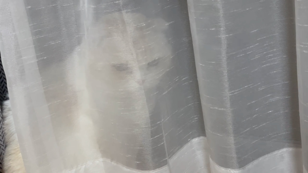 窓の外を眺めるナッツ。