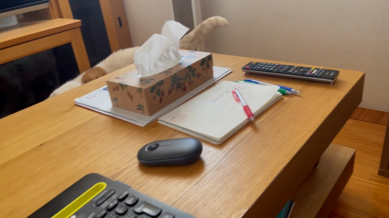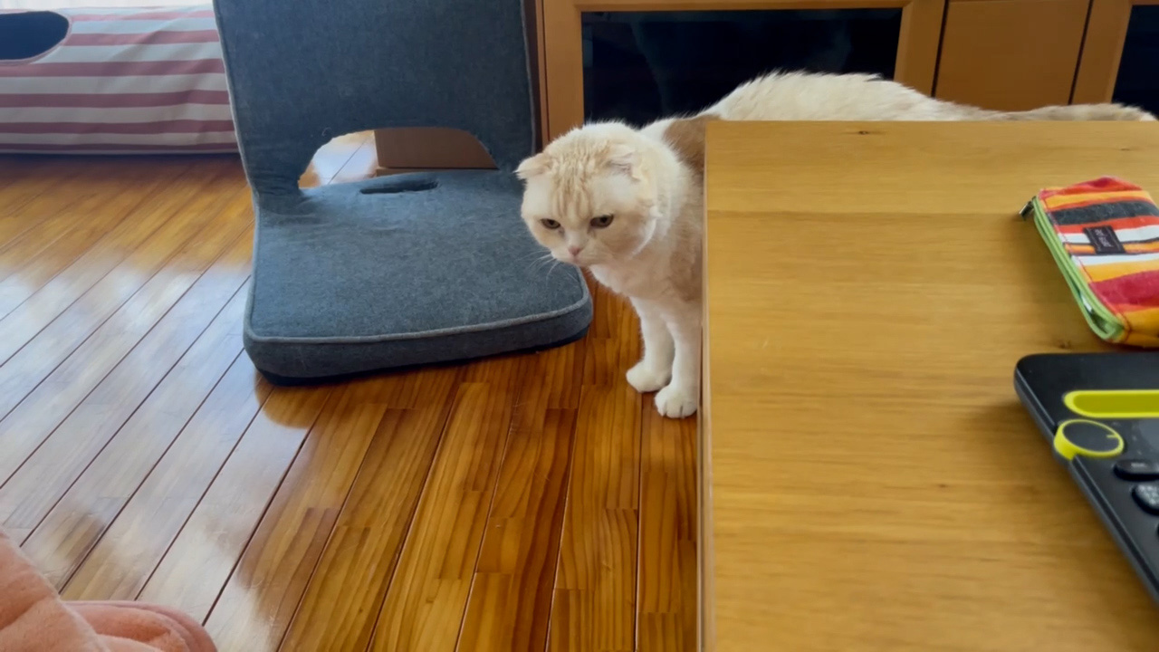 テーブルのまわりをくるっと回って、またまた隣に来てくれました♪