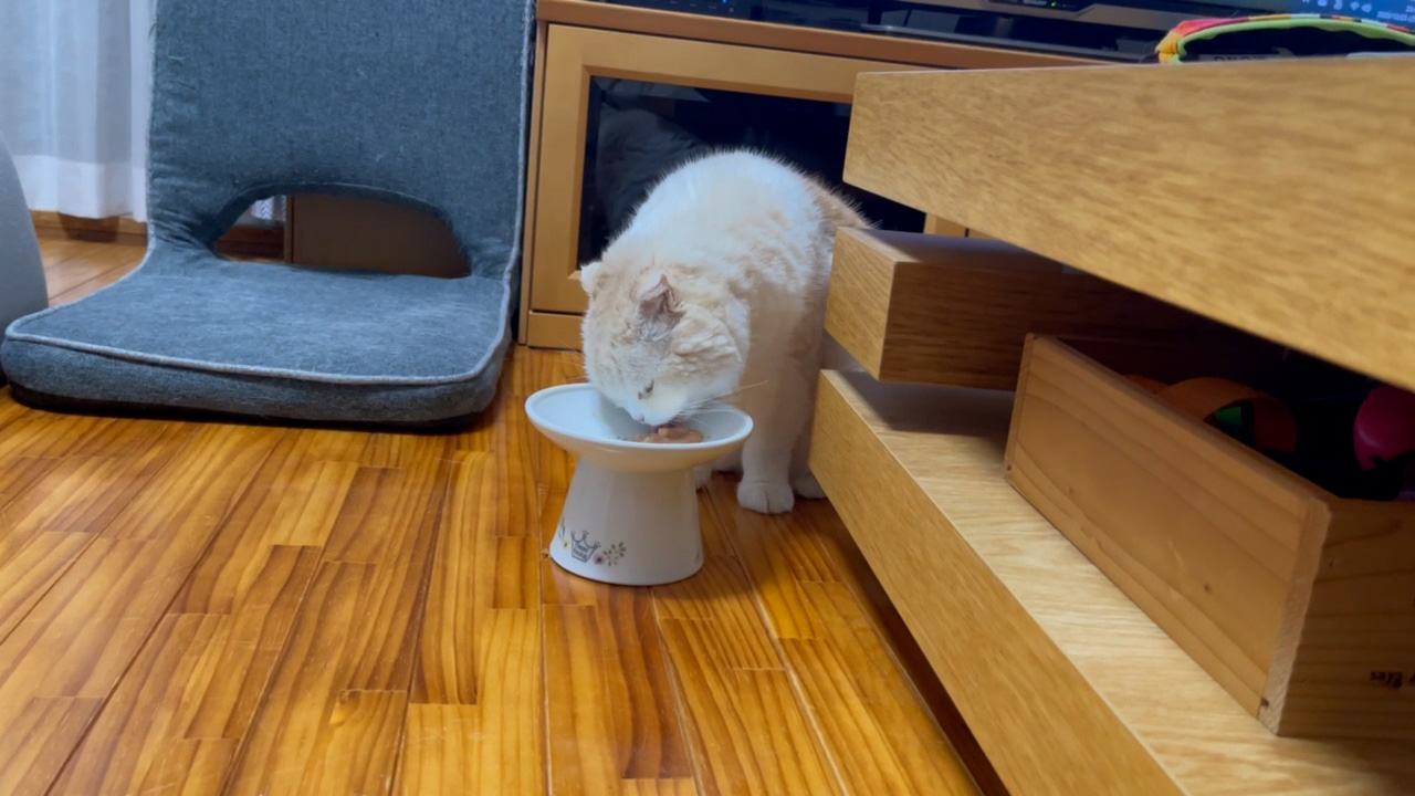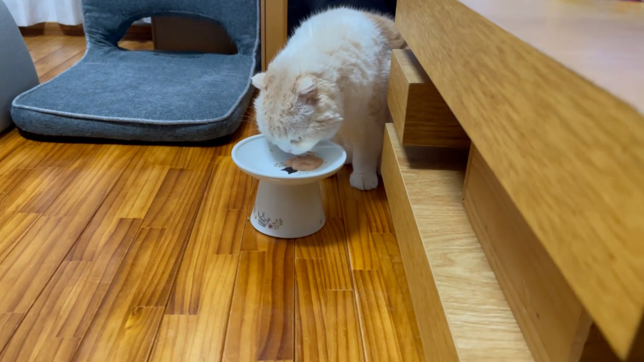 おやつの時間。 ナッツに、チュールを食べてもらいます。