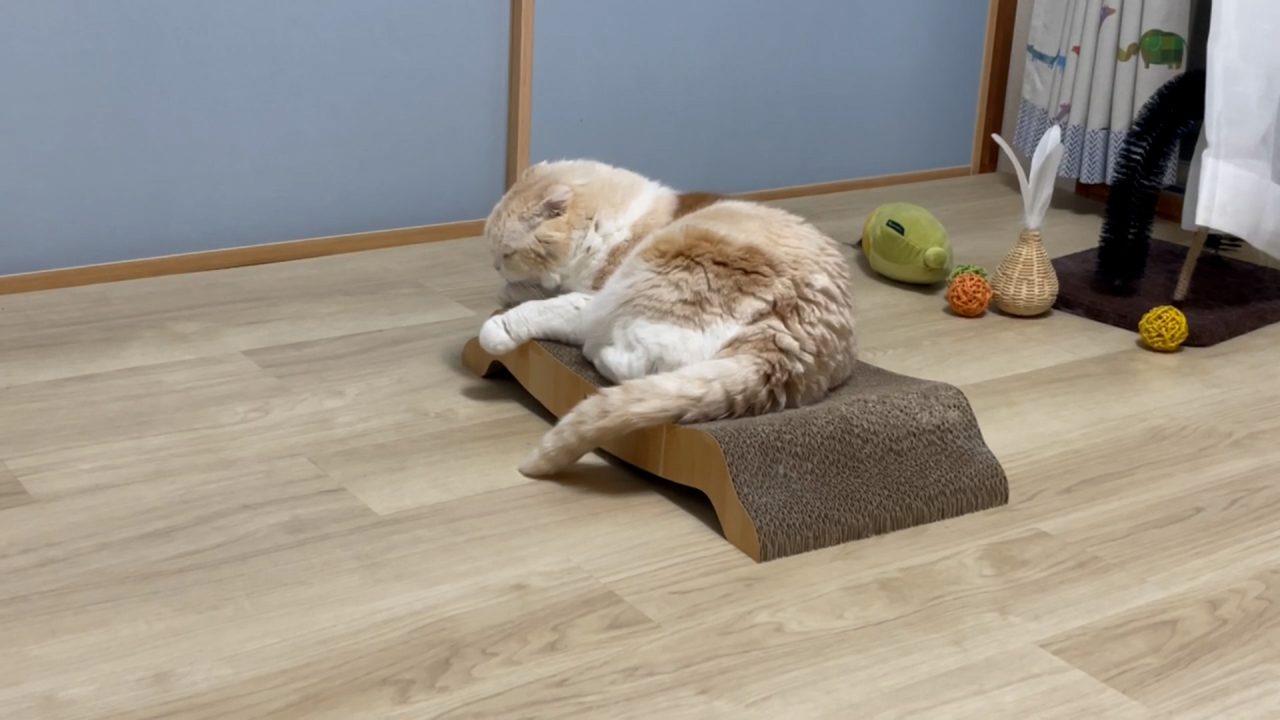 爪とぎベットを使いこなします。さすがナッツです。