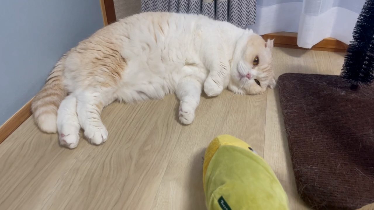 ナッツが、お部屋の隅っこでくつろいでいます。