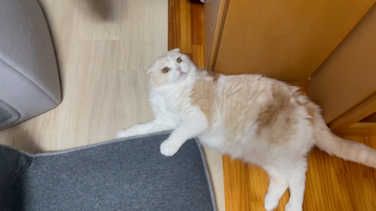 ナッツが、寝転がって無邪気なしぐさを見せてくれます。