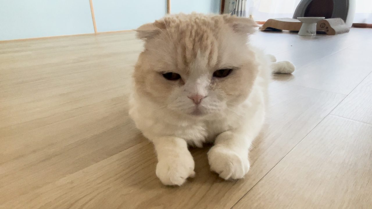 ナッツが、お手てを揃えて、のんびりくつろいでいます。
