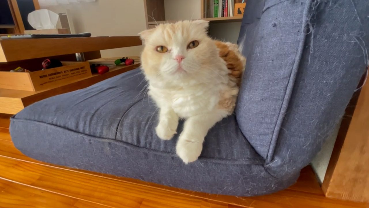 ソファーにおすわりしていたナッツが、駆けつけてくれました。