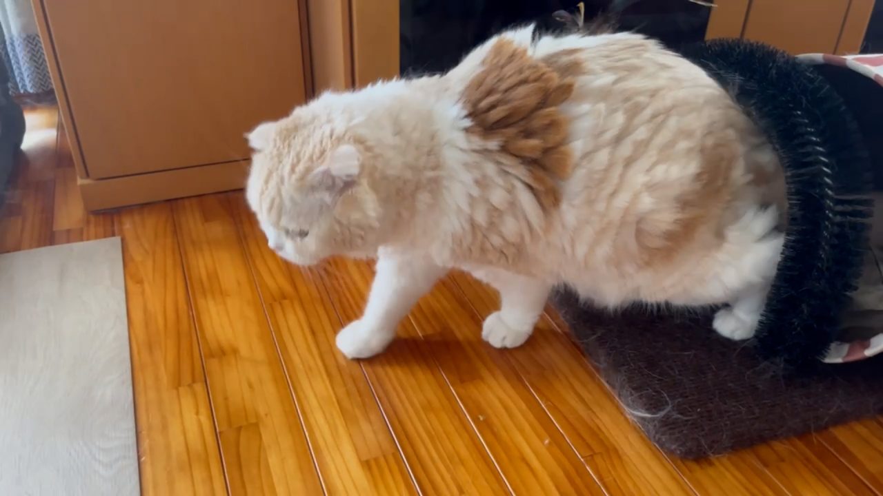 ナッツが、キャットトンネルの中から出てきてくれました。