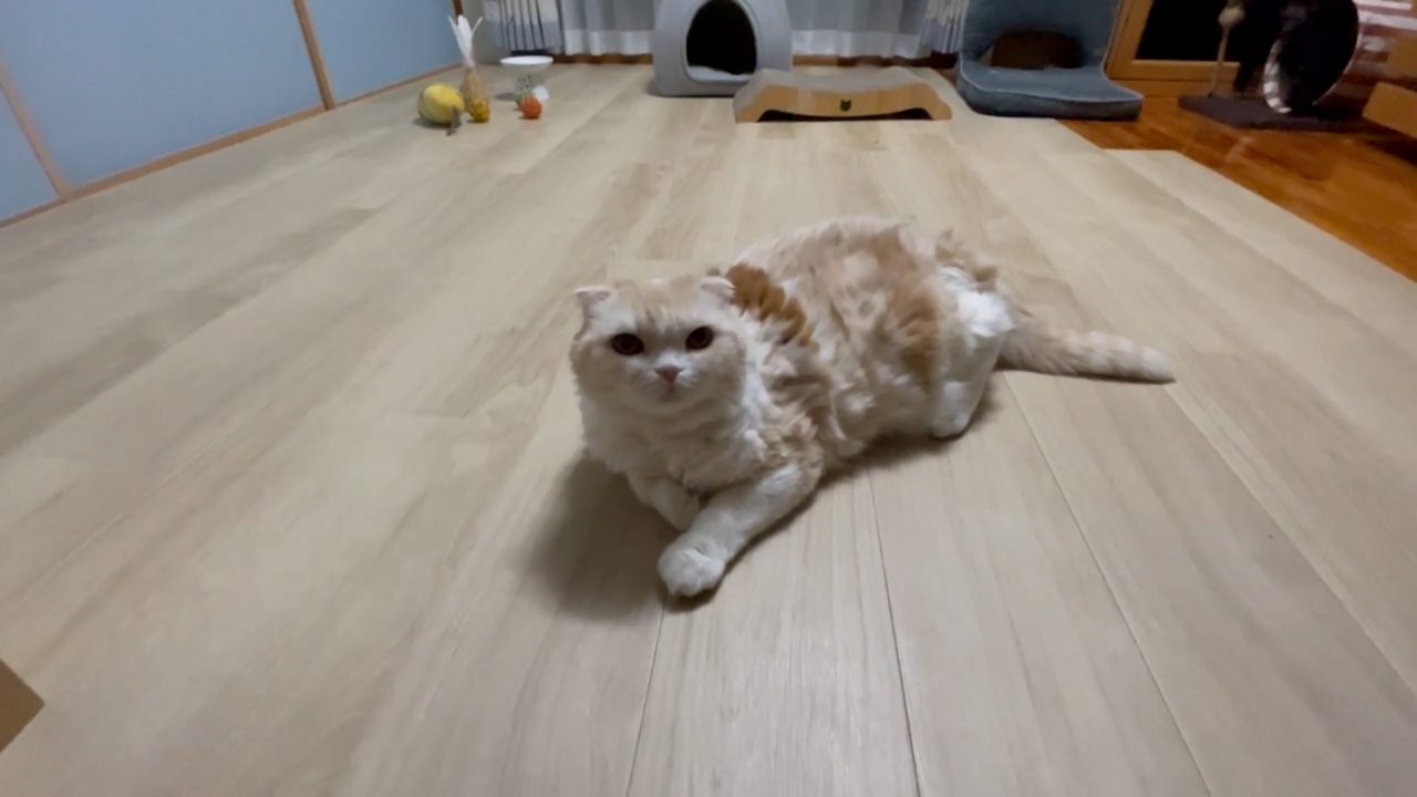 おすわりしているナッツに、そっと近づいてみます。