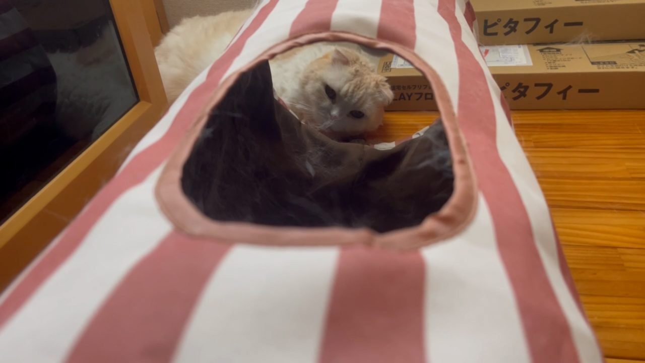 トンネルからのぞくナッツのお顔