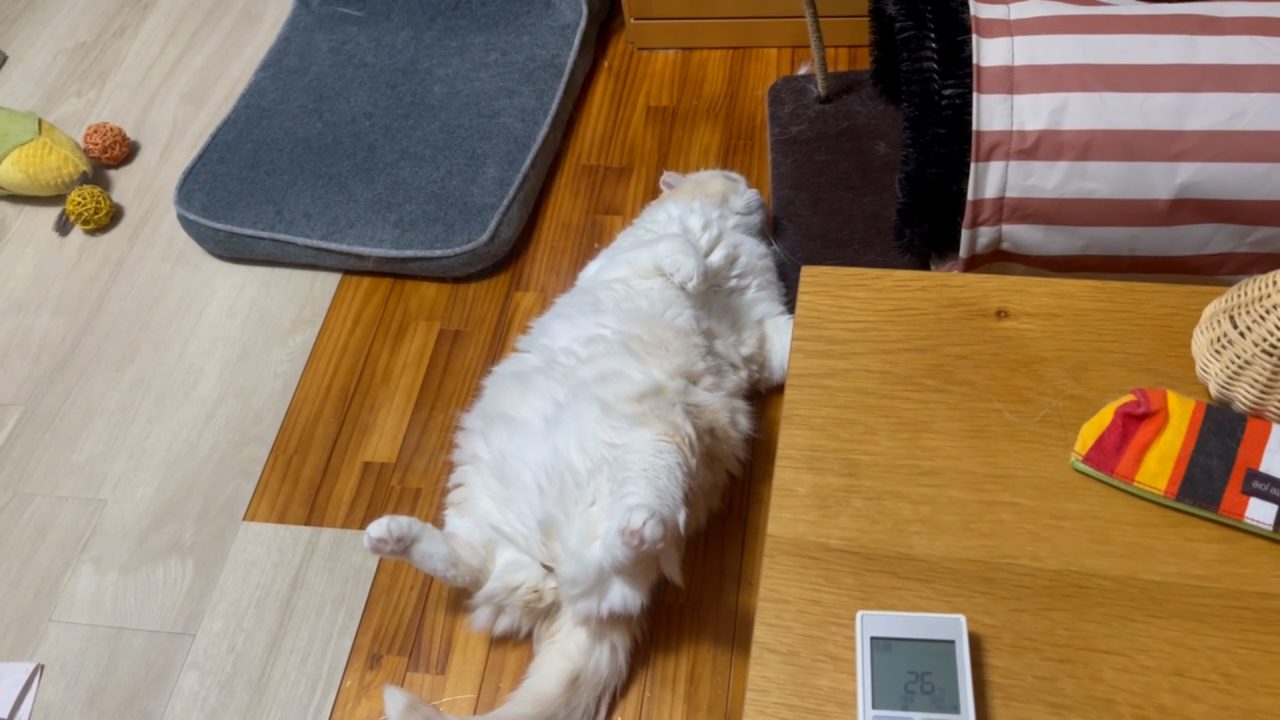 テーブル越しに、ナッツのあんよが見えます。