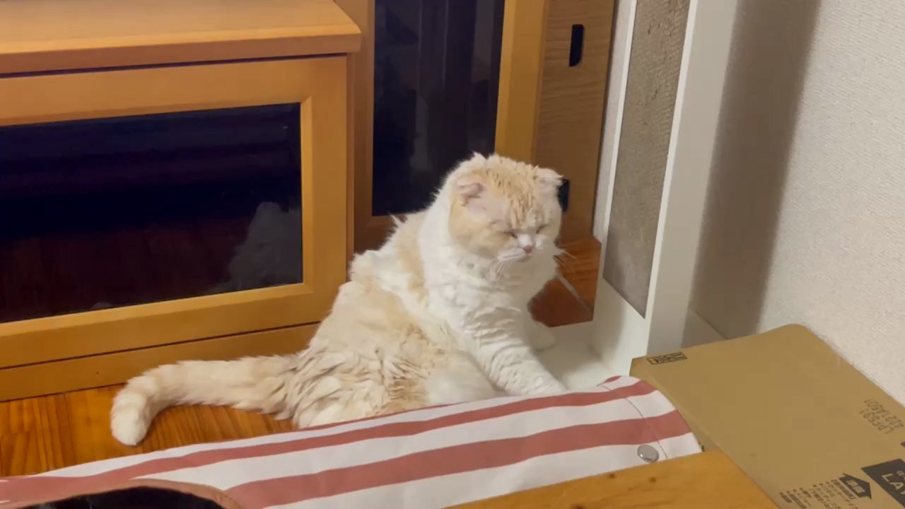 ナッツが、のんびりおすわりしています。