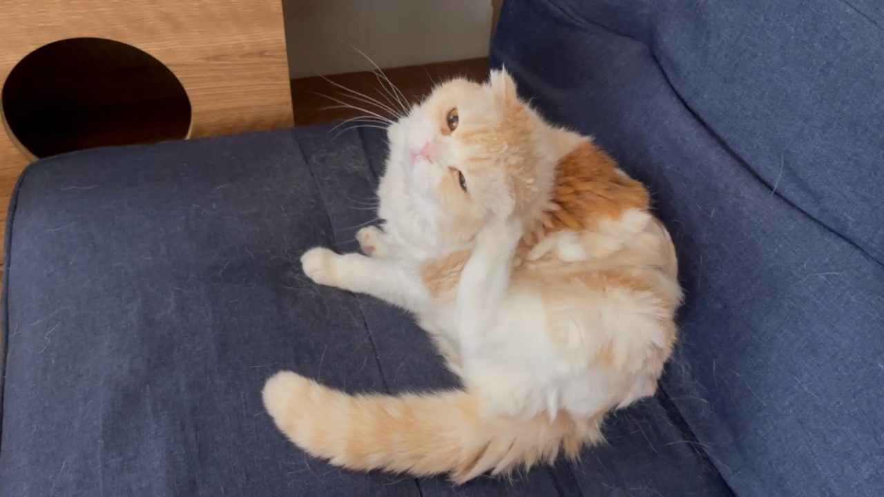 ソファーでくつろぐナッツ。 お耳の後ろがかゆいみたいです。