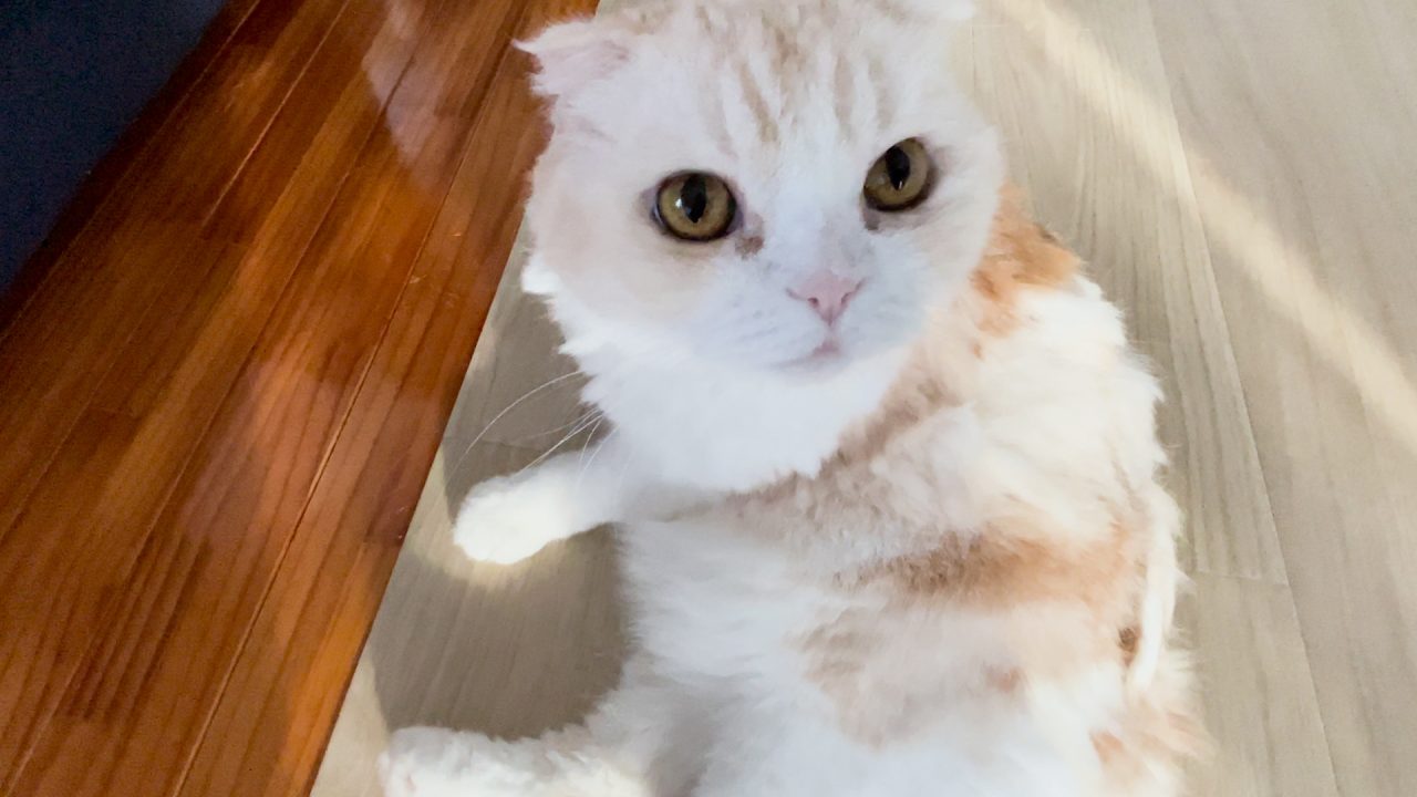 夕暮れ時。くつろぐナッツのもとへ、夕陽が差し込みます。