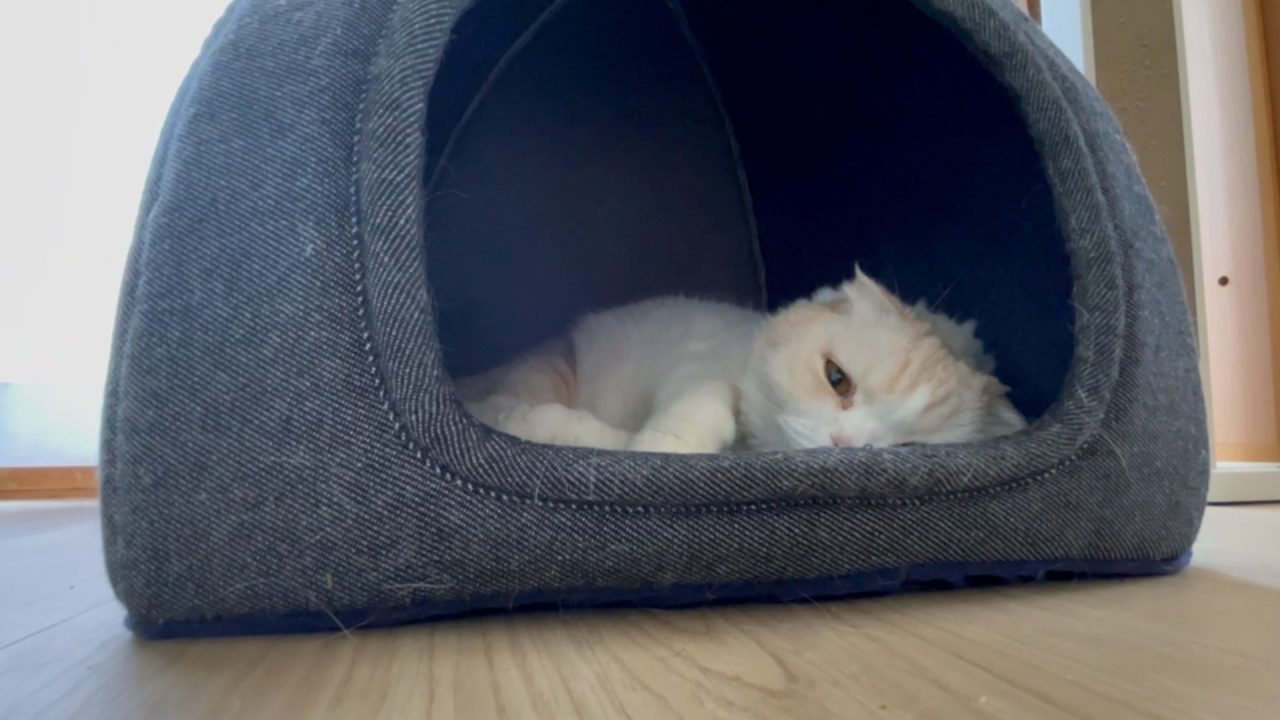 朝のひととき。ナッツは、まだ少し眠そうです。
