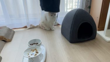 干している洗濯物を、ナッツが見つめています。