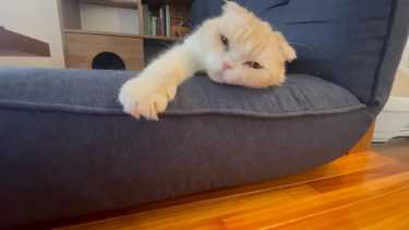 起床後まもなく。 ナッツは、まだ少し眠そうです。