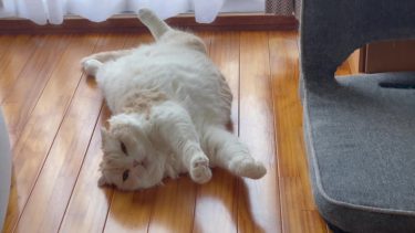 朝のひととき。ソファーのうえで、ナッツがのんびり過ごしています。