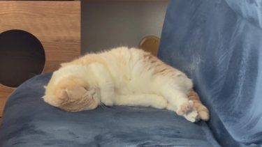 ソファーのうえで寝んねしているナッツのお目めが少し開きました。