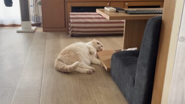 朝のひととき。ナッツがのんびり寝ころんでいます。