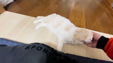 ソファーに腰かけるパパのことを、ナッツが見守ってくれています。