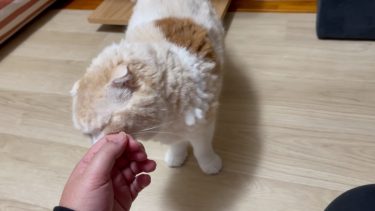 爪とぎベットにもたれて、ナッツがくつろいでいます。