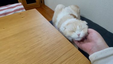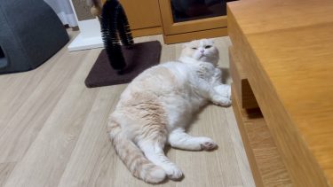 テーブルのよこで、ナッツがくつろいでいます。