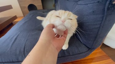 ナッツとのふれあいの時間。ナッツのあご下をさわさわします。