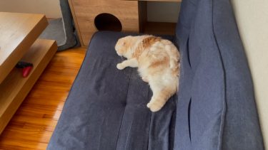 ナッツが、ソファーで可愛くお昼寝しています。