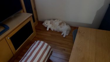 夕暮れ時、お部屋のすみっこで、ナッツが寝んねしています。