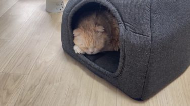 新しいハウスで、ナッツがくつろいでいます。