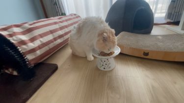 ナッツが、朝ごはんを食べています。