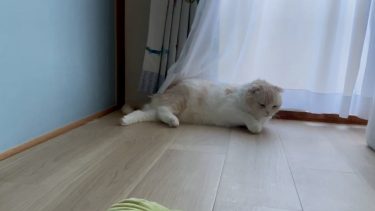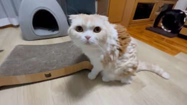 ナッツが、キャットトンネルの中から出てきてくれました。