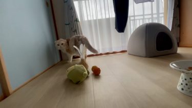 朝食の時間。ナッツのお食事の様子を見守ります。