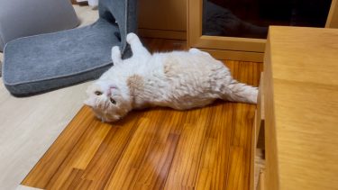 朝食後のナッツが、ヘソ天すがたでくつろいでいます。