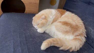 ソファーでお昼寝しているナッツに、そっと近づいてみます。